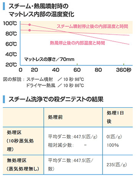 蒸気消毒洗浄ですのでマットレス内部は高温の湿熱により殺菌、ダニ駆除にも威力を発揮。